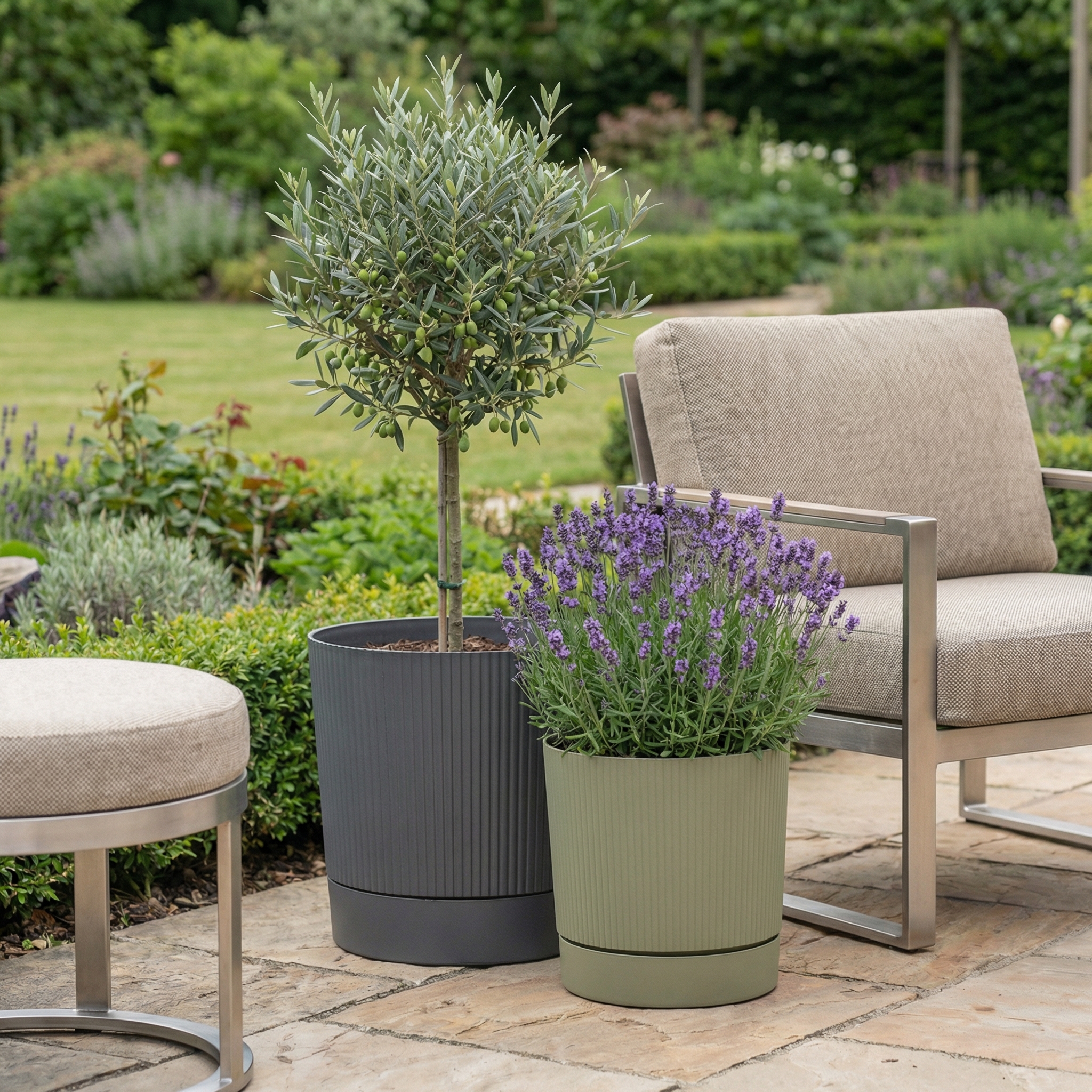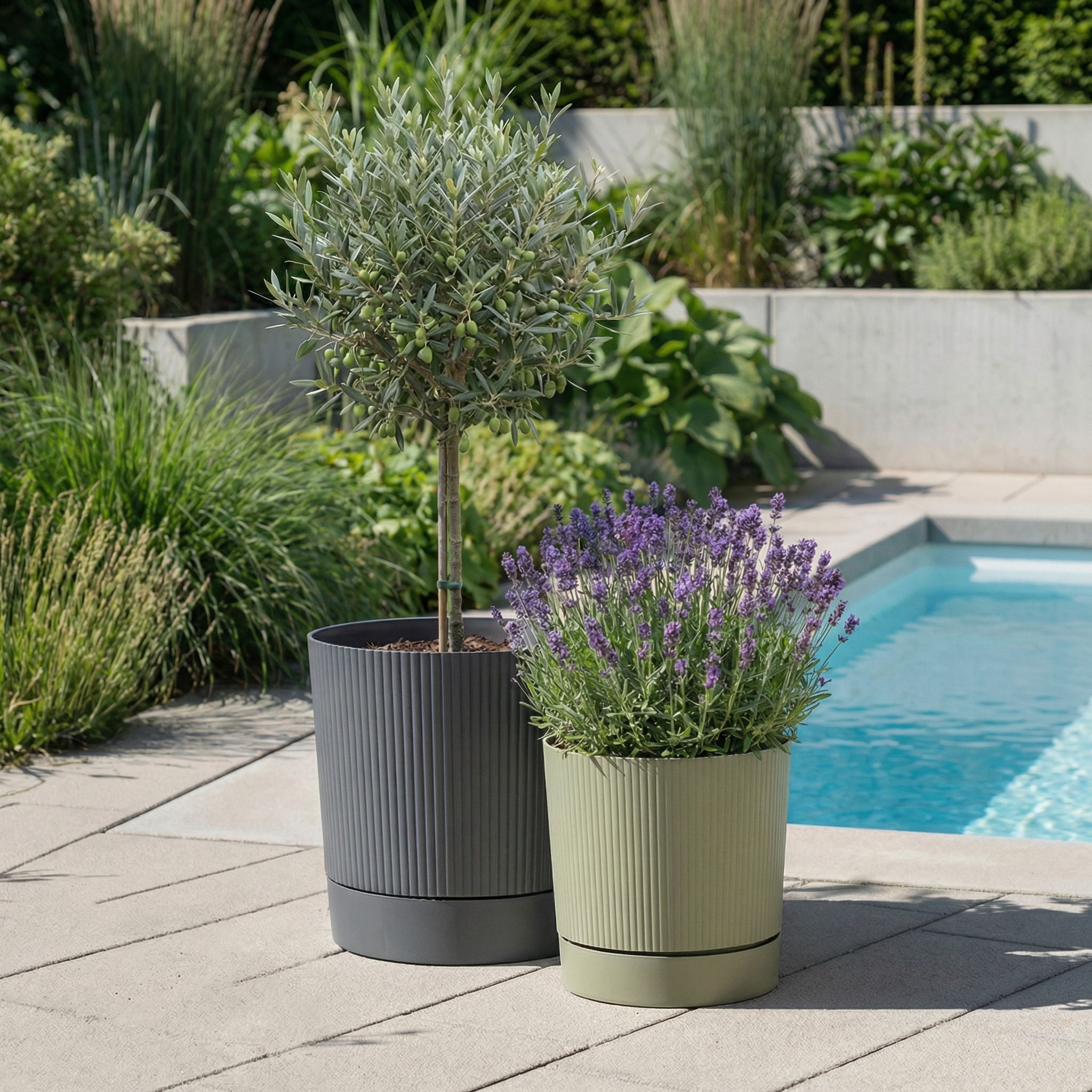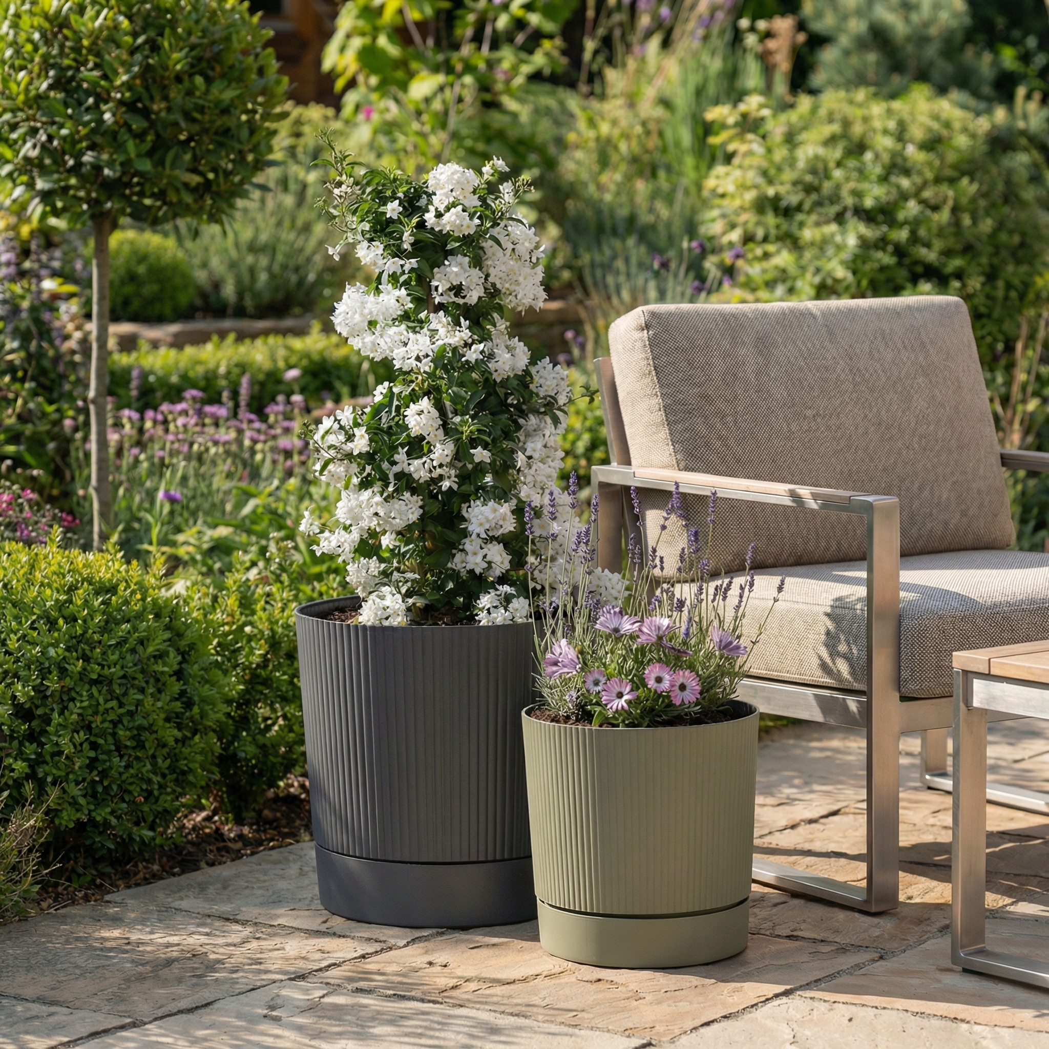 Die stylische Machart von Lino+ mit vertikalen Rillen, geradlinigem Look und dem bewusst eingesetzten Absatz zwischen Topf und Untersetzer wirkt wertig und ergänzt beliebte Loungemöbel auf der Terrasse und im Garten wunderschön. Und das Ganze ist aus dem von Scheurich entwickelten Kunststoff Reduro aus Recyclingmaterial ressourcenschonend und nachhaltig gefertigt. Lino+ ist zudem komplett recyclebar.